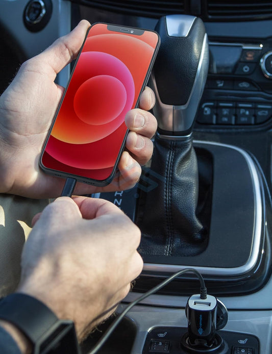 Apple Certified Lightning Car Charger - Rapid Power - Cigarette Lighter Charger for Iphone 14 Pro Max plus Mini 13 12 11 XS X XR XS SE 8 7 6S 6 5S 5 5C - Cable & USBA Dual Charge - Keeps You Connected