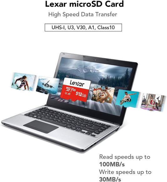 512GB Micro SD Card, Microsdxc UHS-I Flash Memory Card with Adapter - up to 100Mb/S, A1, U3, Class10, V30, High Speed TF Card